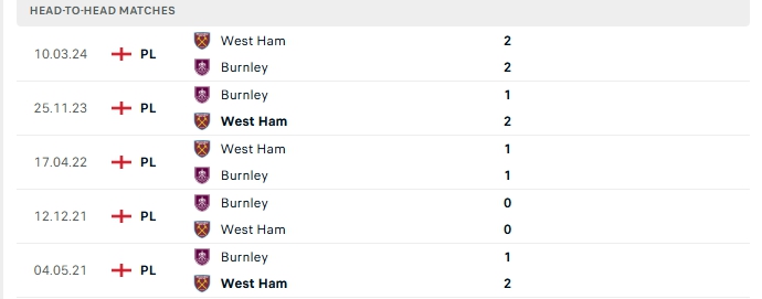 Lịch sử đối đầu của West Ham Utd vs Burnley