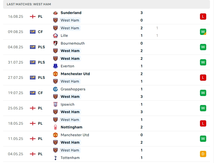 West Ham Utd để chuẩn bị cho mùa giải mới họ mang về 5 trận giao hữu, 4/5 trận đấu đó khép lại 90 phút từ 3 bàn thắng trở lên, ở trận ra quân West Ham Utd gây thất vọng khi để Sunderland chọc thủng lưới 3 lần, hàng thủ của West Ham Utd đang chơi tệ và khiến họ gặp khó ở mùa giải năm nay, trên sân nhà của mình ở 2/3 trận gần nhất khép lại trên 3 lần lưới rung.