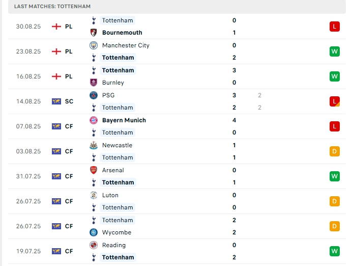 Bên kia sân, Tottenham sau 3 trận đấu họ có được 6 điểm với 2 chiến thắng cùng 1 thất bại, đang xếp vị trí thứ 4 trên BXH, ở ngày ra quân họ có chiến thắng ấn tượng 3-0 trước Burnley, sau đó chiến thắng 2-0 trước Man City và mới nhất là thất bại bất ngờ trước Bournemouth, dưới thời của tân HLV Thomas Frank, lối chơi của Tottenham đầy khó đoán và hiệu quả hơn, phong độ thời gian gần đây của Gà trống khá tốt.