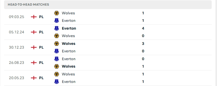 Những màn đụng độ giữa Wolves và Everton thường diễn ra chặt chẻ với không nhiều bàn thắng được tạo ra, 3/5 lần gặp nhau gần nhất của hai đội và lần gần nhất đón tiếp Everton trên sân của Wolves cũng khép lại không quá 2 bàn.