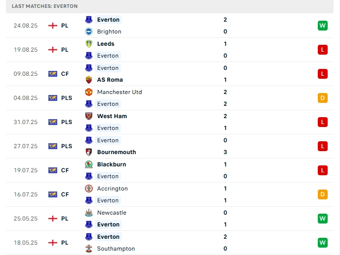 - Phong độ Everton