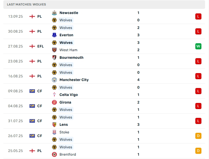 Wolves ở trận ra quân họ nhận thất bại đậm 0-4 trước Man City, ở trận sau đó họ tiếp tục gây thất vọng khi để thua 0-1 trước Bournemouth và 2-3 trước Everton, ở vòng gần nhất họ tiếp tục thất bại khi để thua 0-1 trước Newcastle, chưa có điểm số nào và đang tạm xếp vị trí cuối cùng trên BXH, phong độ thời gian qua của Wolves là cực kỳ tệ hại khi họ chỉ có đúng 1 chiến thắng ở 10 trận gần nhất, trên sân nhà Wolves cũng chỉ thắng 1 ở 7 trận đã qua.