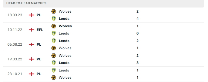 Những màn đụng độ giữa Wolves và Leeds Utd thường diễn ra hấp dẫn với nhiều bàn thắng, ở 3/5 lần gặp nhau gần nhất của hai đội và cũng 3/5 lần đón tiếp Leeds Utd trên sân nhà Molineux Stadium khép lại từ 3 bàn trở lên, hàng thủ đang là điểm yếu để hàng công cả hai khai thác.